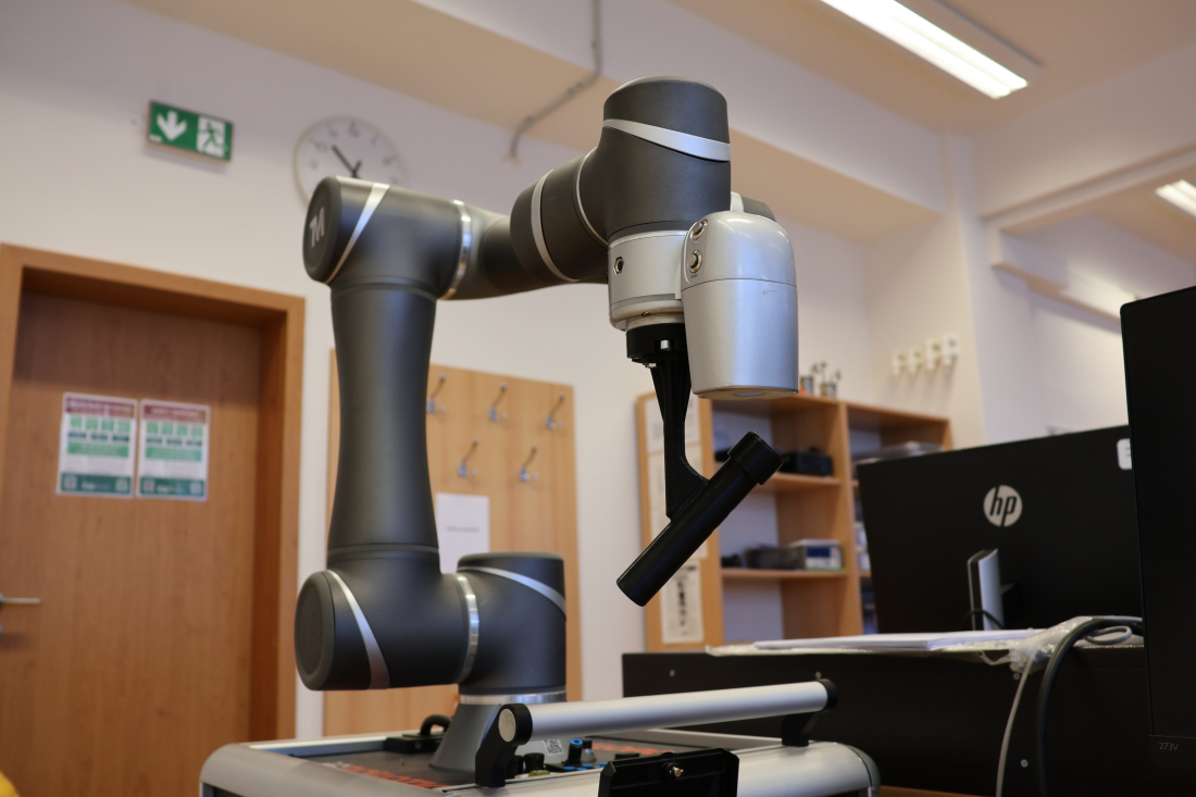 Laboratoř robotů disponuje průmyslovým robotem IRB 1090, kolaborativním robotem CRB 15000 GoFa od společnosti ABB a nové také kolaborativním robotem TM5-900 od společnosti Techman.